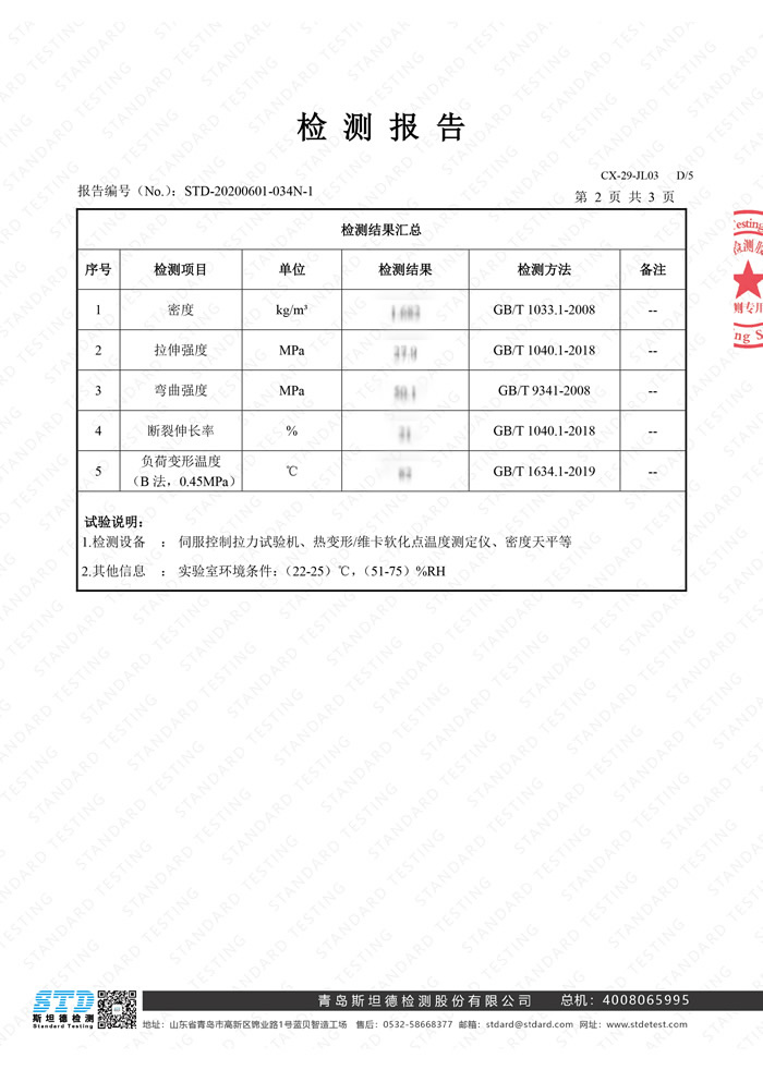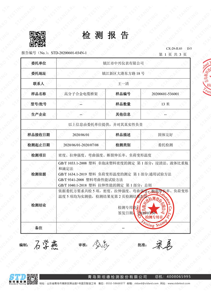 资质证书 Qualification certificate高分子合金电缆桥架检测报告 STD-20200601-034N-1